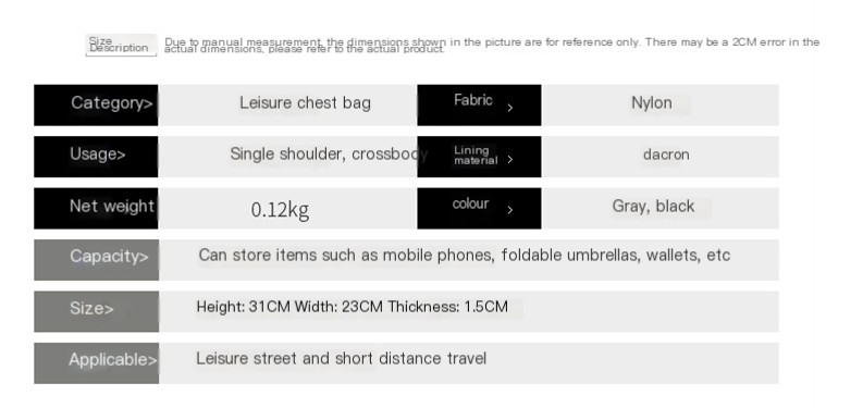 Discover the perfect blend of style and functionality with our Men's Shoulder Bag. Designed for the modern man on the go, this simple outdoor casual chest bag is ideal for daily commutes and outdoor adventures alike.