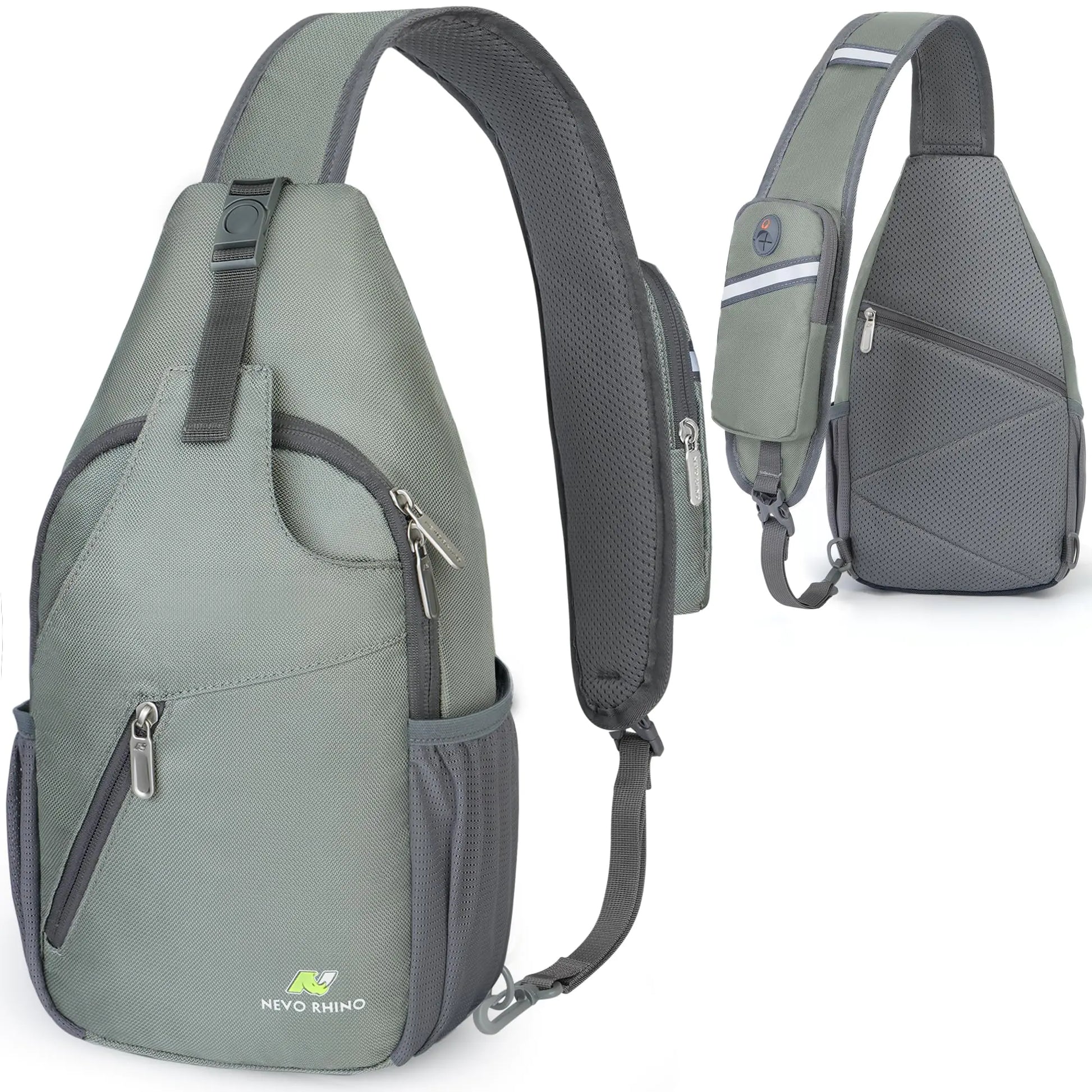 N NEVO RHINO Crossbody Sling Backpack Small Sling Bag Hiking Daypack Chest Bag Travel Shoulder Bags with Anti-theft Pocket (Light Gray Green)